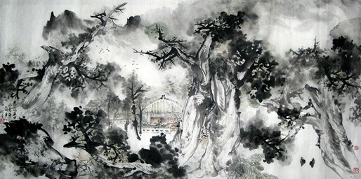 中国画讲求“以形写神”,追求一种“似与不似之间”的感觉,从顾恺之“以形写神”、“迁想妙得”;吴道子画嘉陵江三百余里一日而毕;以至石涛的“山川与予神遇而迹化”等,总之是主张“形神兼备”,主客观的统一。正如白石老人所说的一样,“作画妙在似与不似之间,不似为欺世,太似则媚俗。”另一方面国画中写意常常被称之为写心,所谓意从心出,心意与心象是作品的灵魂及内涵所在。黄宾虹先生说过:“山水画写自然之胜,亦写吾人之心。”当代山水画家金树勇将中国传统绘画中“写其形,必传其神,传其神,必写其心”的理念作为一条连通艺术创作与艺术灵魂的纽带,作为创作的信条,从而才取得今日的艺术成就。